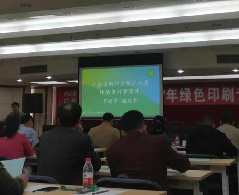 在本次绿色印刷专项会议中,中环联合认证中心、广东省新闻出版广电印刷发行管理处领导及印刷行业环保领域相关专家就有关环保问题进行充分交流研讨。其中广州帝天印刷材料有限公司的参会代表在会议上做了有关绿色原材料控制等相关咨询和沟通。