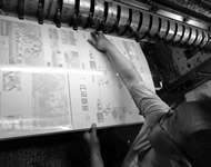 报纸在高速轮转胶印机上印刷的时候,因为印刷的速度比较快,所以通常技术上会要求新闻纸要有比较强的吸墨性能,这样油墨在新闻纸上的干燥速度会比较快。